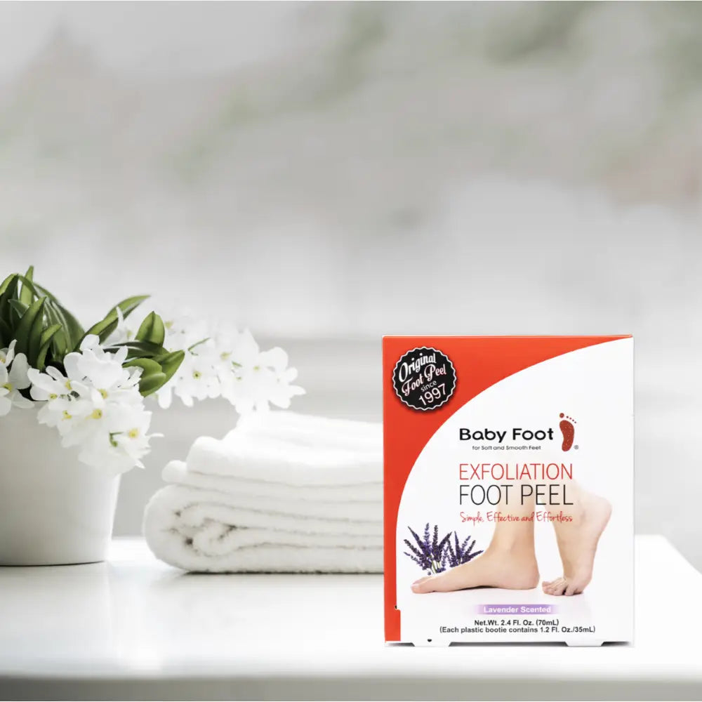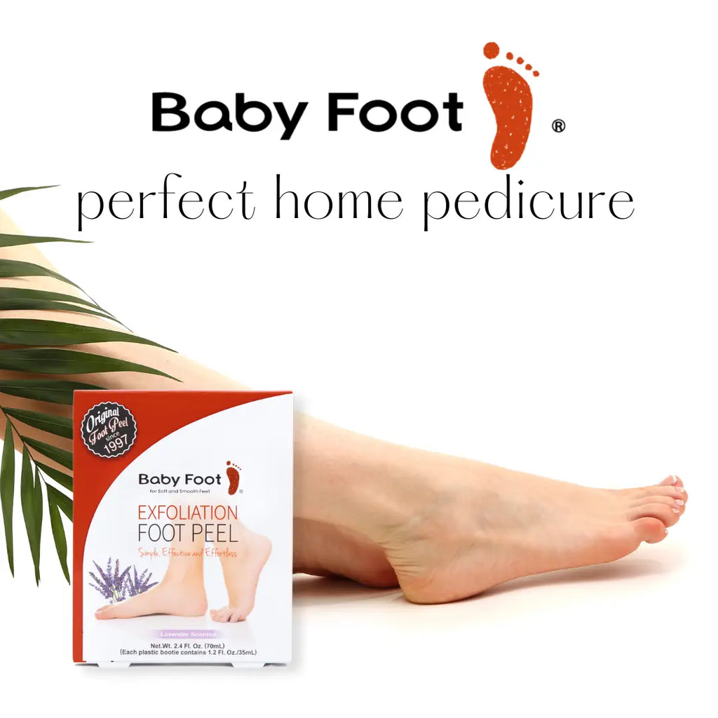 Baby Foot is an innovative foot care product that will make your feet smooth and as soft as a baby's foot. Our scientifically formulated product contains 16 types of natural extracts which exfoliate and moisturize at the same time. The principal ingredient of Baby Foot is fruit acid, which is very gentle, when compared with other acids. This effective and gentle process removes the unwanted dead skin cells that have built up layer after layer. The fruit acid penetrates the layers of dead skin cells and breaks down the desmosomes which hold the layers together. With this process, skin is undamaged, but peels easily away from the fresh layer beneath. After peeling, your feet are reborn just like a baby’s foot, giving you healthy, beautiful feet. So, say goodbye to rough, dry, cracked soles, by using a product that really works! Baby Foot makes the perfect gift for any occasion!