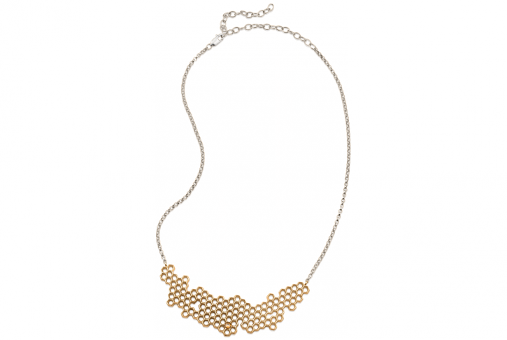 Sterling Silver chain necklace with wide jeweled Bronze honeycomb design