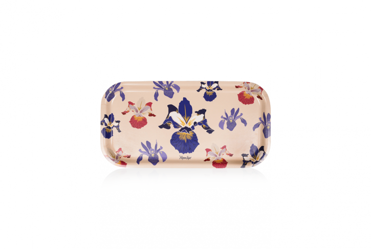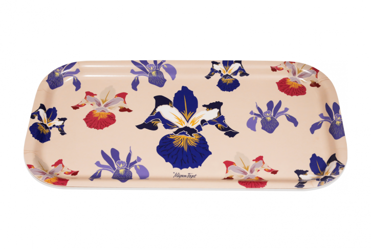 Serving tray from Mf. At Home featuring Iris flowers in various colors and sizes.