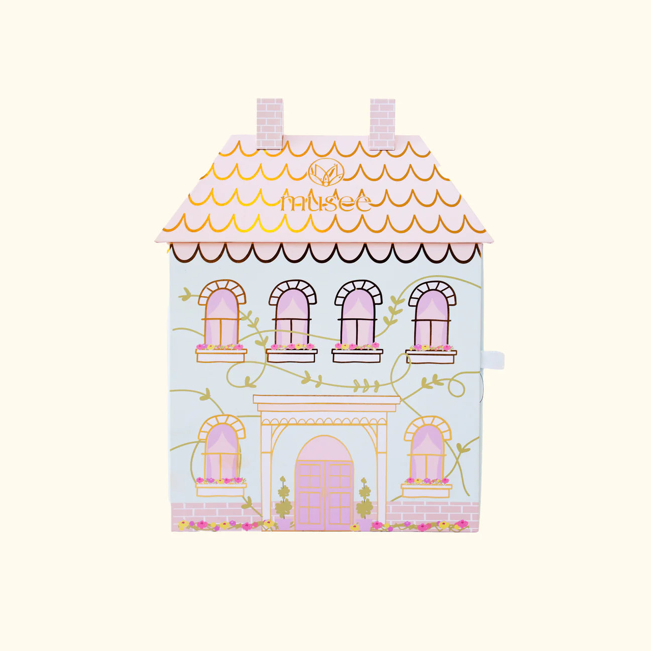 Use your imagination with this adorable abode! Fill the rooms with Musee peg doll friends that you’ll find nestled in each of the 4 bath balms! This doll house box features four colorful bath balms tucked away into a kitchen, living room, bedroom, and bathroom!