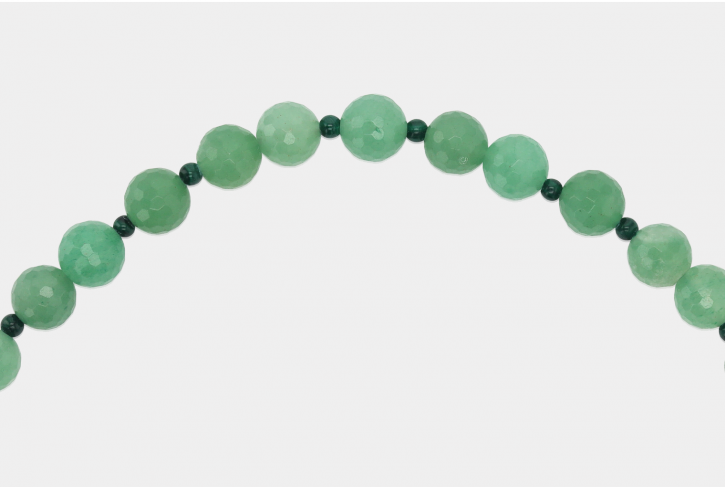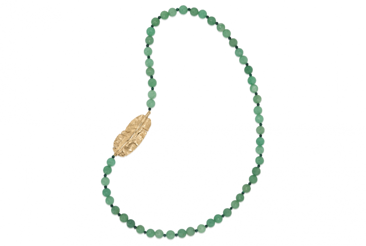 • Asymmetrical necklace with Aventurine and Malachite gemstones featuring a Banana Leaf Pendant.