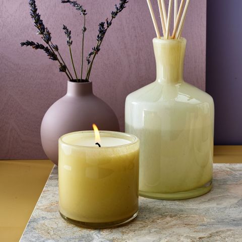 Fresh sheets beckon. On the nightstand a sprig of lavender melds beautifully with warm and enveloping bergamot. Calming chamomile melts into a heart of eucalyptus to create a feeling of well-being. Smoky patchouli is enhanced by hints of sage and rosemary for a quiet, relaxing finish.