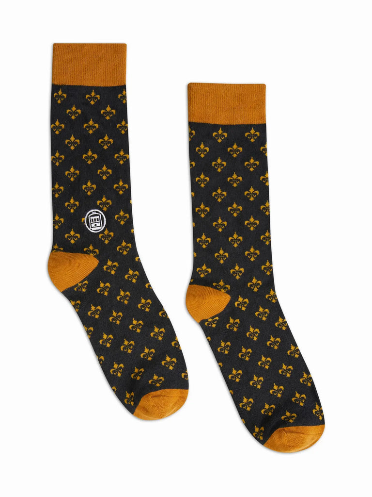 Fleur De Lis Socks in Black & Gold. Also available in sizes for the whole family.