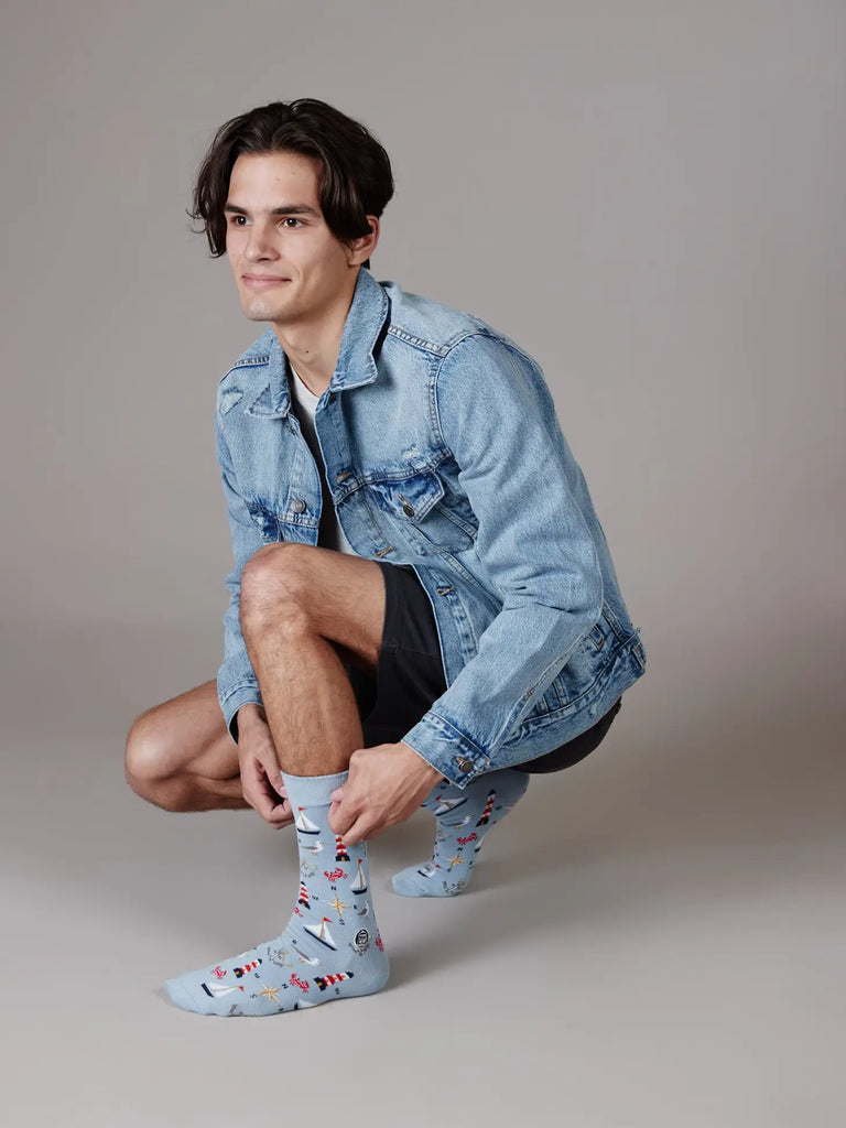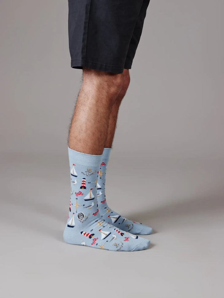 Nautical pattern socks.