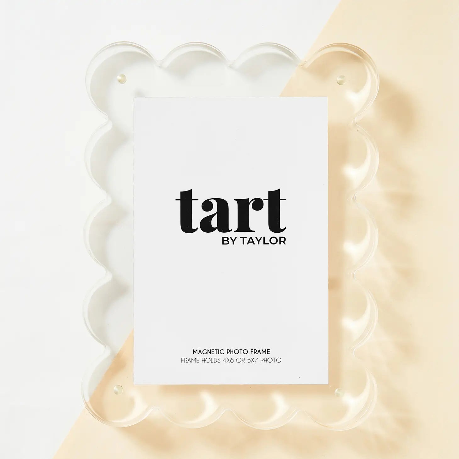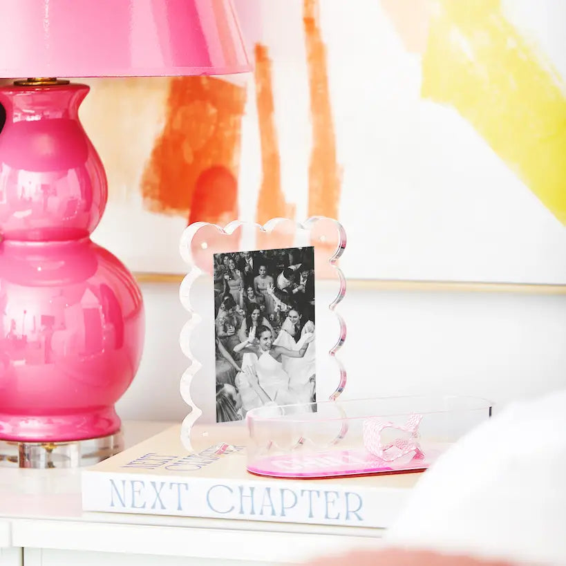 Display your favorite photos in style with this clear acrylic picture frame! It features a magnetic border to securely hold your cherished pictures as well as adding a stylish touch. Perfect for giving your home a fun and unique look! 🤩