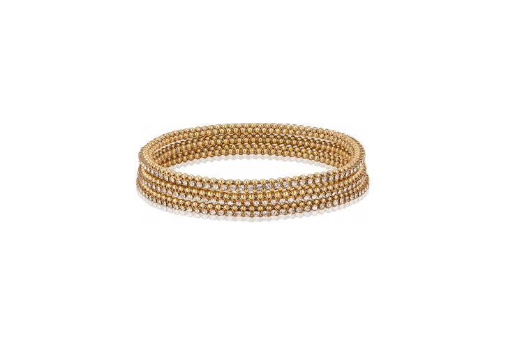 - Handwoven bangle with crystals and 24K Gold PVD Plated ball chain