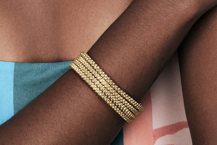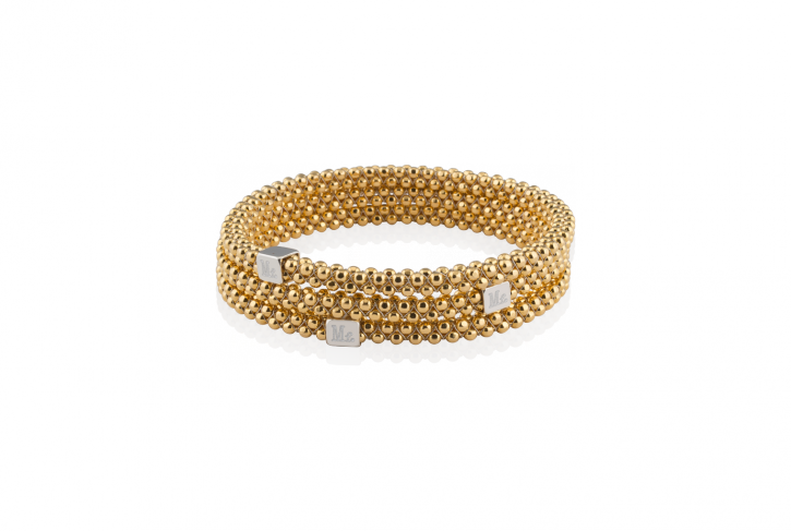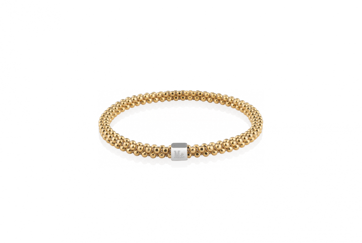 • Handwoven bangle with 24K Gold PVD plated Stainless Steel chain