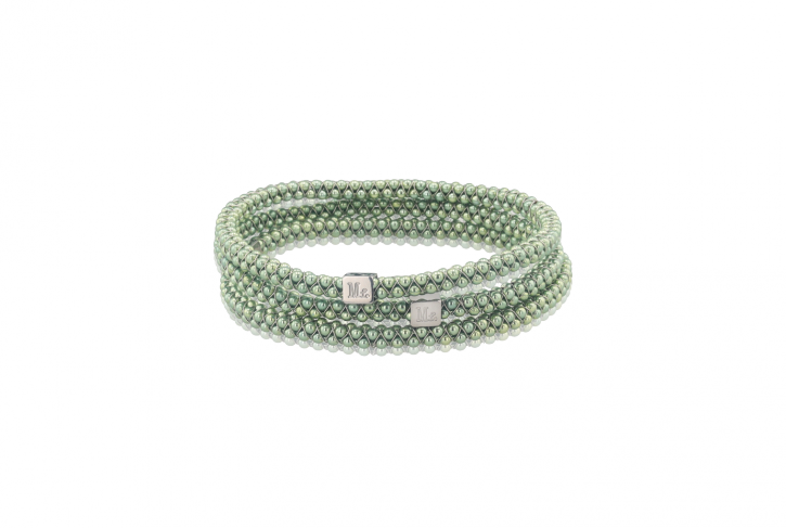- Handwoven bangle with green anodized aluminum ball chain