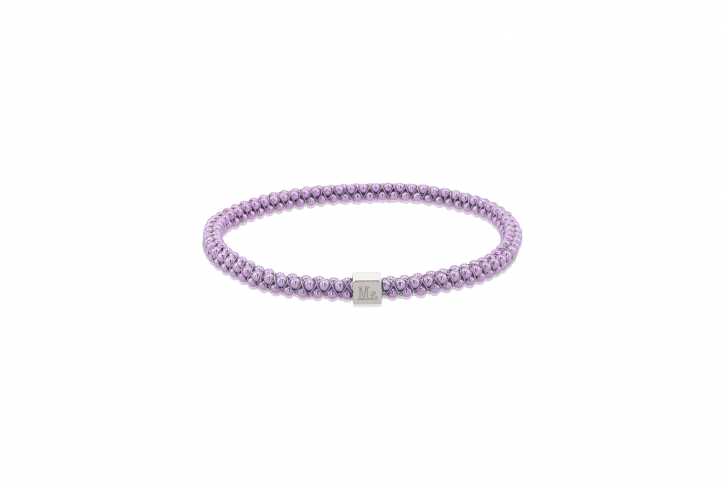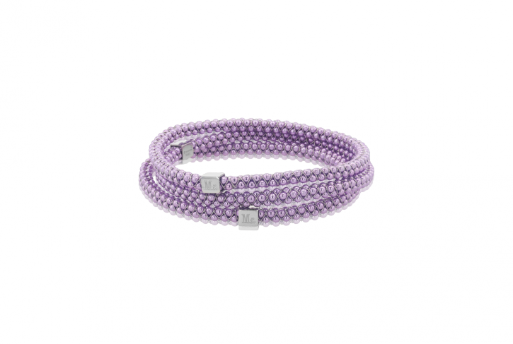 • Handwoven bangle with purple anodized aluminum ball chain