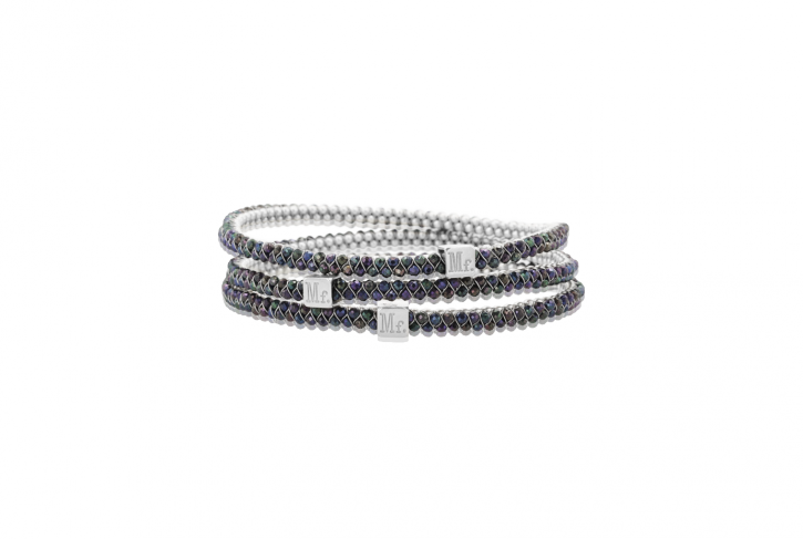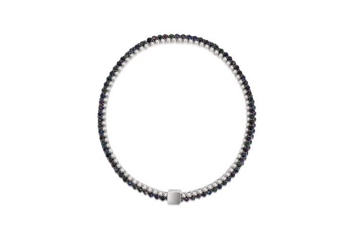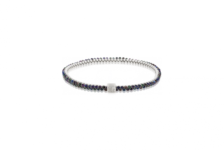 - Handwoven bangle with faceted Black Spinels and round Sterling Silver ball chain