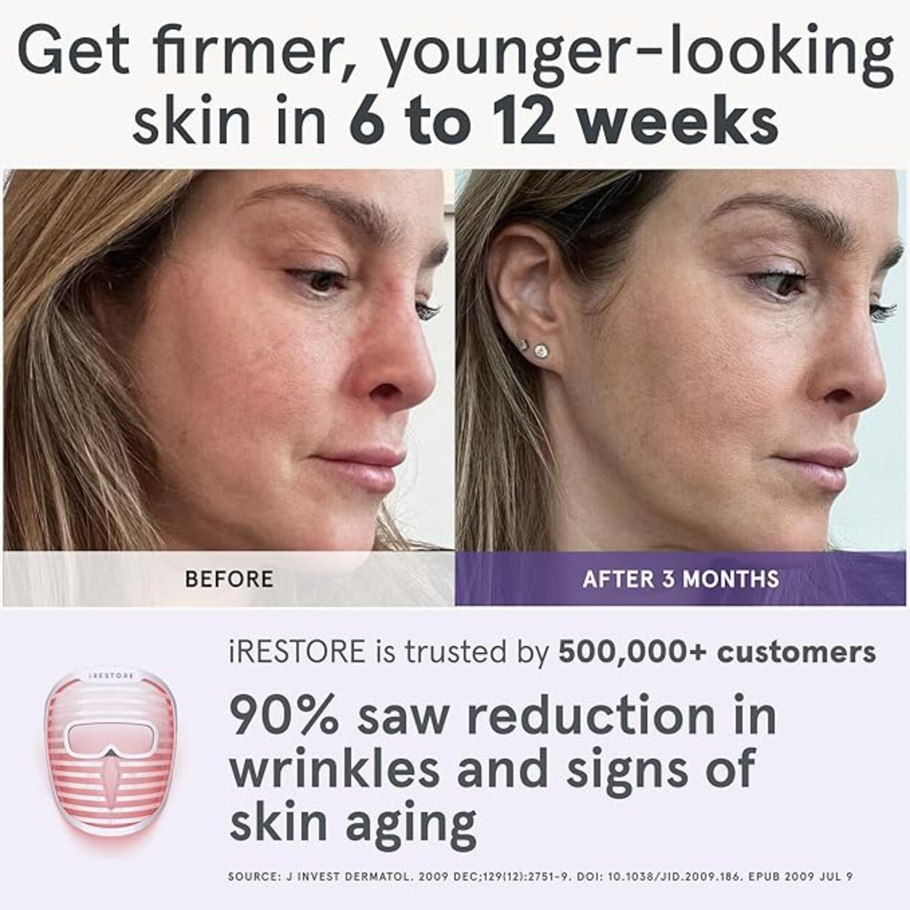 Utilizing 360 LEDs, the IRESTORE LED Face Mask Light Therapy device is a top-of-the-line option for addressing a variety of skin concerns. With over 2X the power of leading brands, it produces visible results in as little as 6 weeks. Backed by 20+ years of research and development and trusted by over 500,000 customers, this red light therapy mask is both durable and effective. Moreover, with a 100-day risk-free trial, it sets the standard in the industry. The Triple Wavelength Technology allows for targeted and efficient treatment through its Red (635nm), Infrared (830nm), and Blue (415nm) Light Therapy modes, each powered by dedicated LEDs. In addition, the mask's lightweight-yet-sturdy design, complete with a dual-strap system and breathability, makes it a multitasker-friendly choice while also blocking light from the eyes for comfortable use.