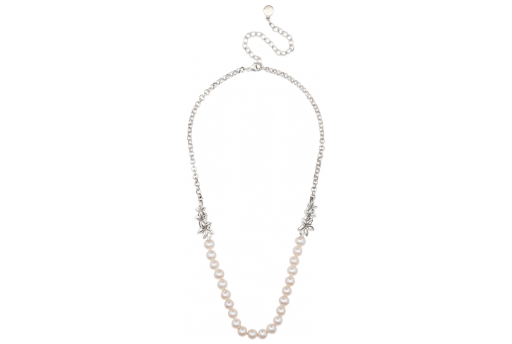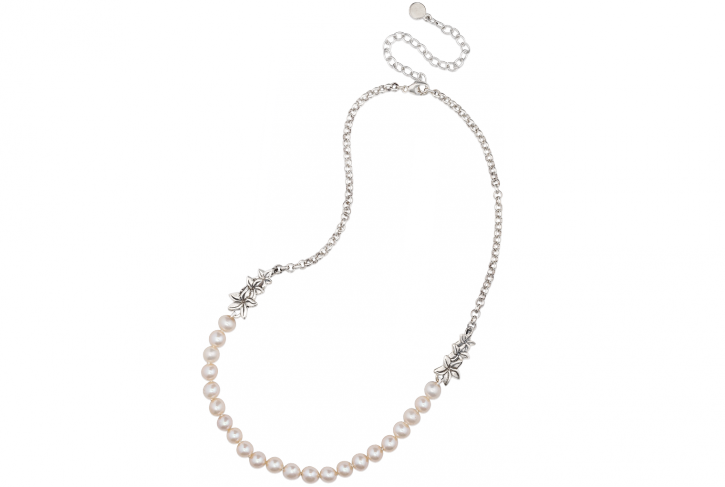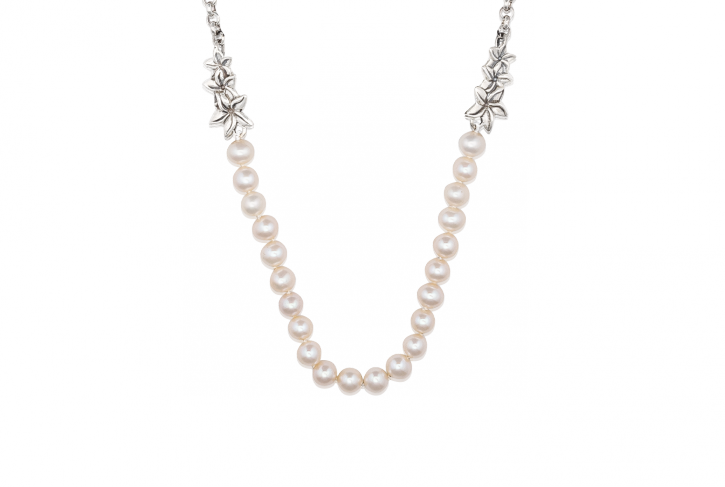 - Necklace featuring freshwater pearls and jasmine flower accents