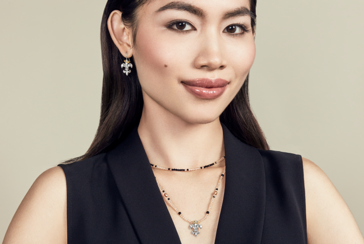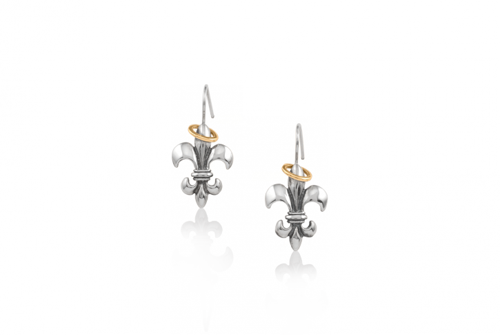 - Dangle earrings with the classic Mignon Faget Fleur de Lis wearing a halo