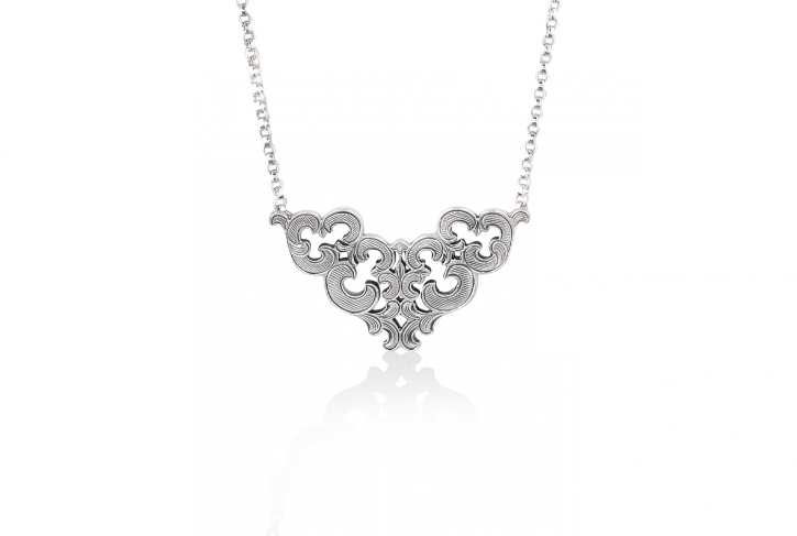 Necklace from the Renaissance Collection. Sterling Silver or 14K Gold.The architectural details of the Renaissance collection pay homage to the French Quarter and the brilliant strength of resilience, recovery, and rebirth found in New Orleans.