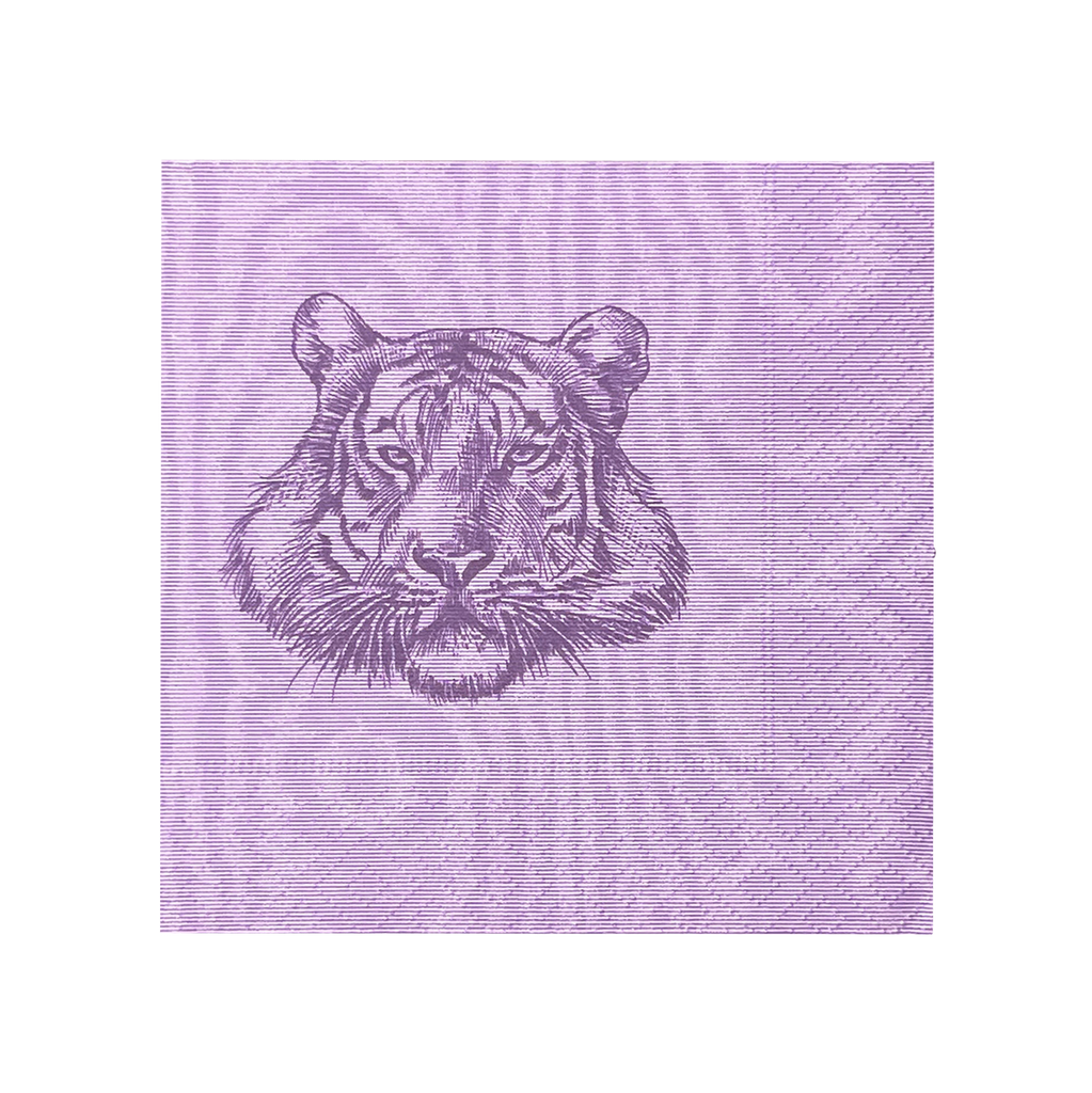 Make every hour a happy hour! My regal tiger cocktail napkins are a wonderful addition to any bar, snack station, or coffee table — whether you’re hosting 2 or 200. My hand-drawn tiger is printed in the USA on a Lavender Moire 3ply paper napkins.